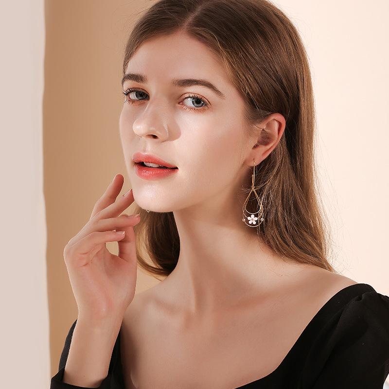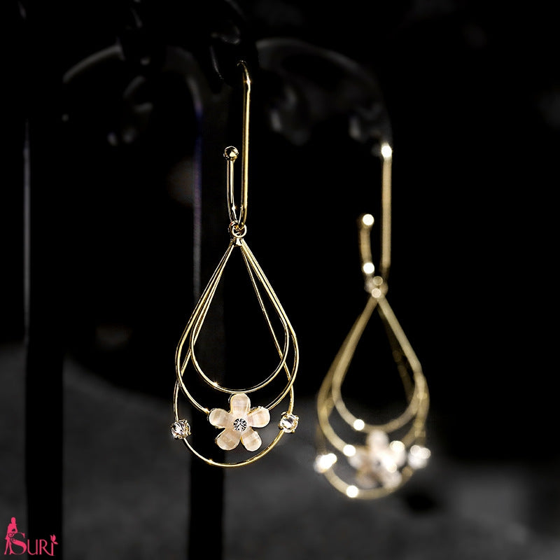 Bông Tai Tòn Teng Hình Giọt Nước Nhiều Lớp Phối Hoa Đá