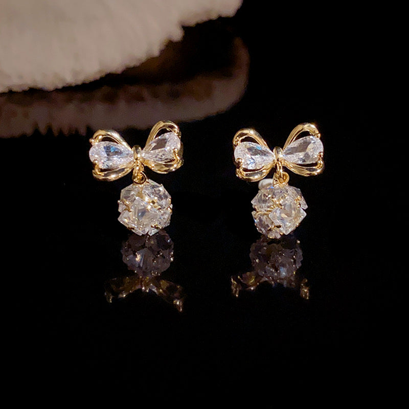 BÔNG TAI TÒN TENG HÌNH NƠ ĐÍNH ĐÁ PHỐI ĐÁ LẬP PHƯƠNG XINH XẮN