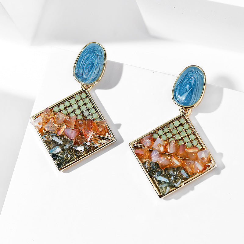 Bông Tai Tòn Teng Hình Thoi Đá 3 Tầng