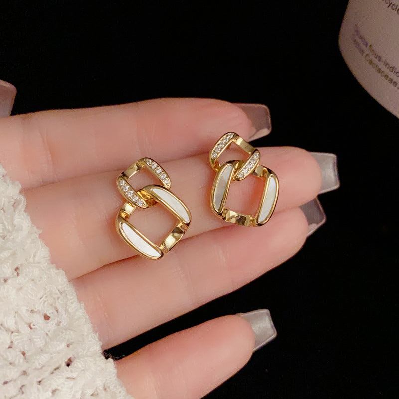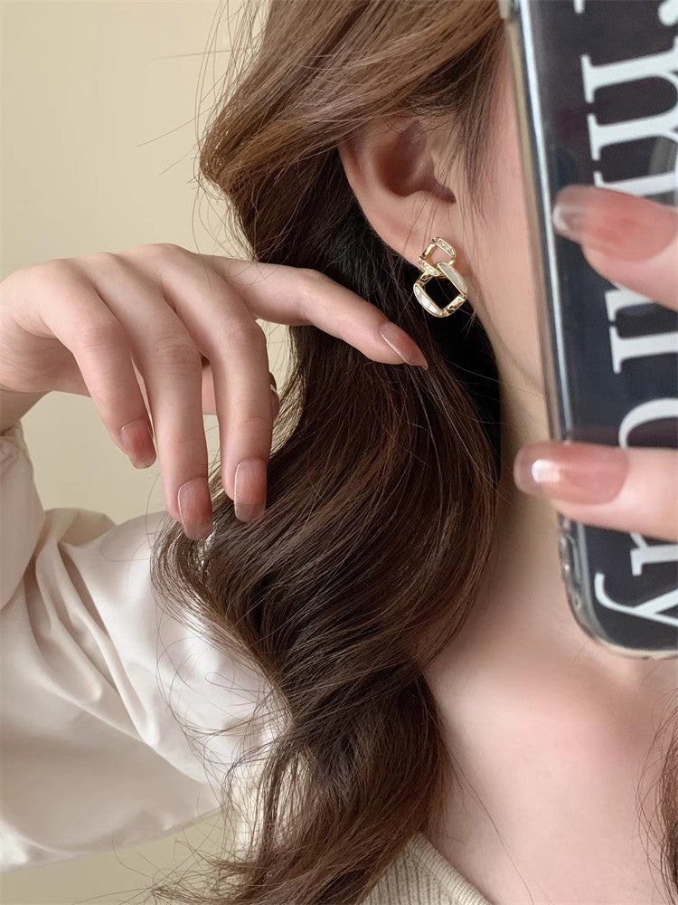 Bông Tai Tòn Teng Hình Thoi Đôi Phủ Màu Phối Đá Trắng Cá Tính