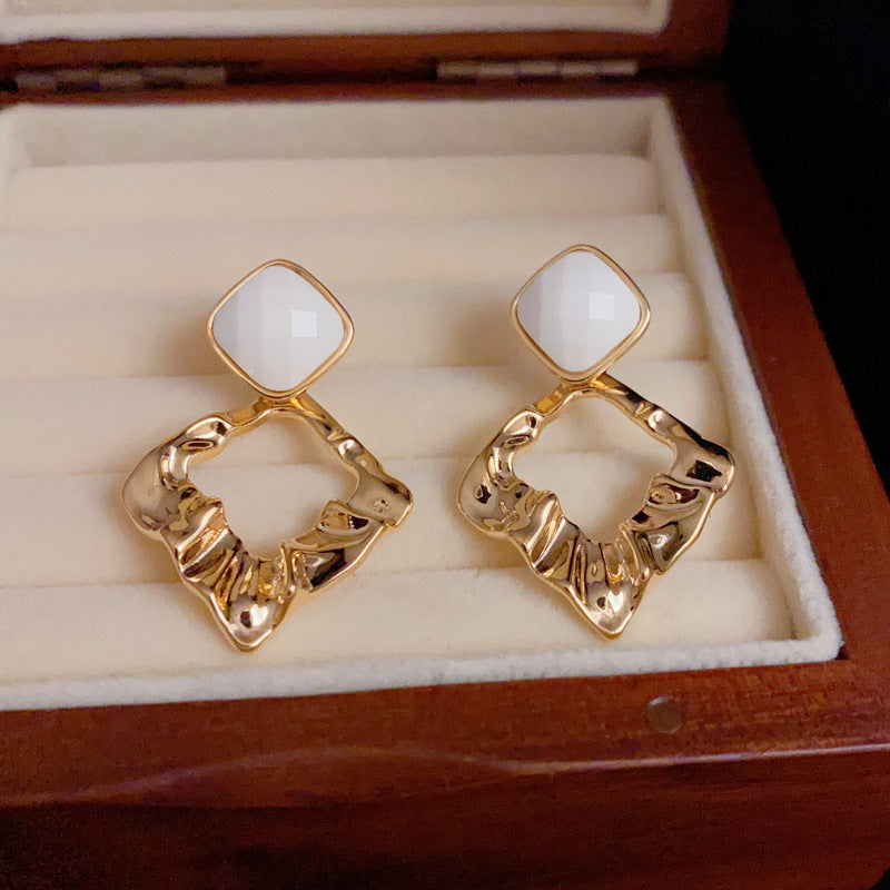 BÔNG TAI TÒN TENG HÌNH THOI ĐÔI TRẮNG PHỐI BẢN HỢP KIM VÀNG CÁ TÍNH