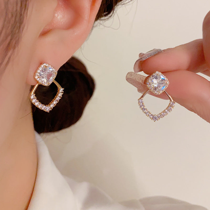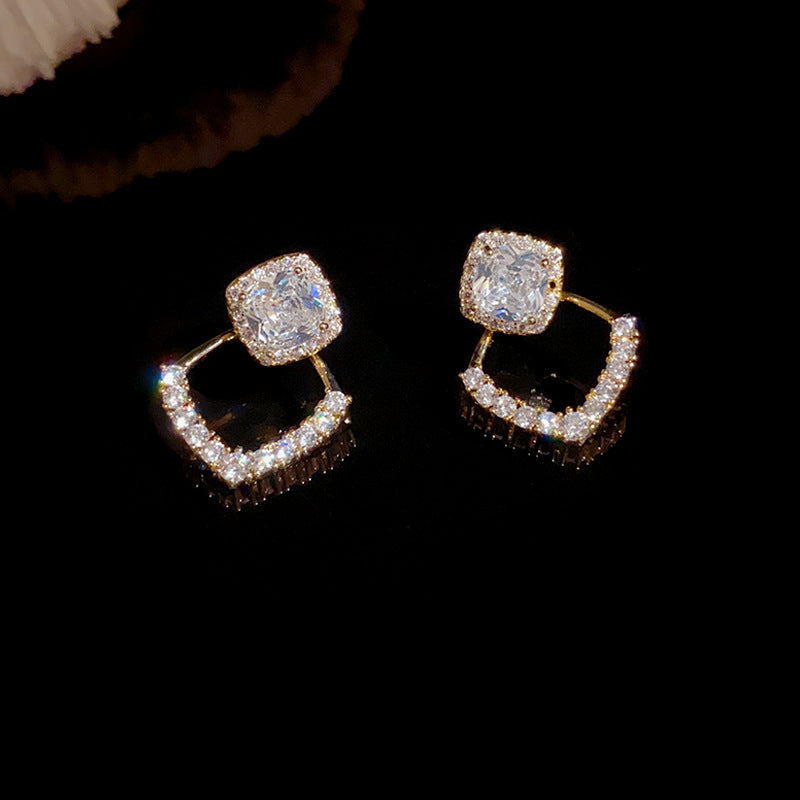 BÔNG TAI TÒN TENG HÌNH THOI KÉP F ĐÍNH ĐÁ TRẮNG SÁNG