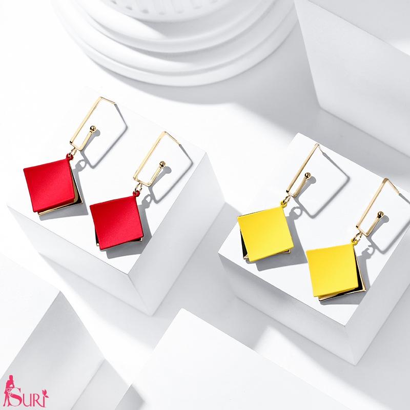 Bông Tai Tòn Teng Hình Thoi Màu 2 Lớp