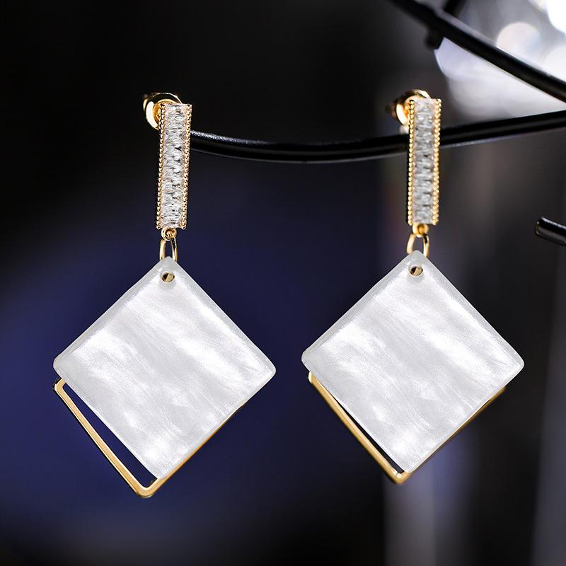 Bông Tai Tòn Teng Hình Thoi Trắng