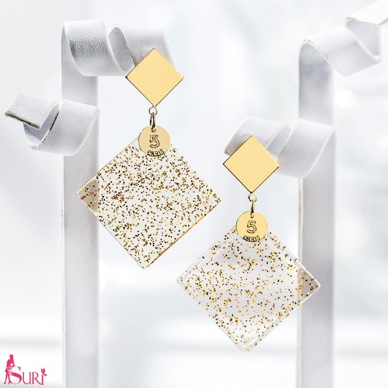 Bông Tai Tòn Teng Hình Thoi Trong Suốt Kim Tuyến
