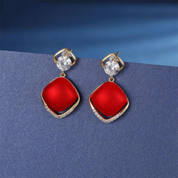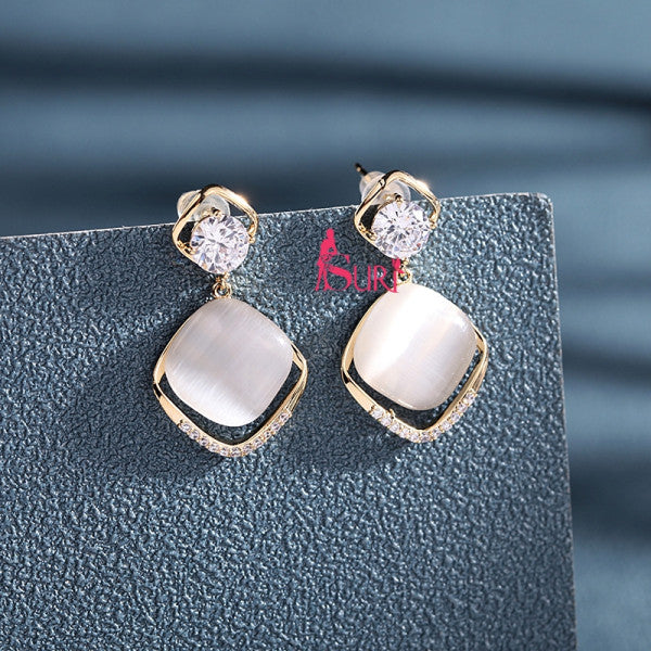 Bông Tai Tòn Teng Hình Thoi Vàng Đính Đá Mắt Mèo Nữ Tính