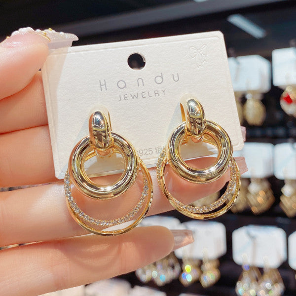Bông Tai Tòn Teng Hình Tròn Vàng Nhiều Kiểu Phối Đá Cá Tính