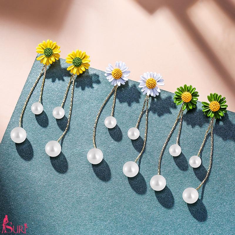 Bông Tai Tòn Teng Hoa Cúc 2 Ngọc Trai