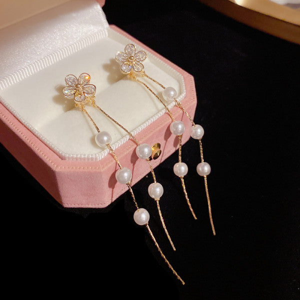 Bông Tai Tòn Teng Hoa Đá Tua Rua Ngọc Trai Dáng Rơi 2 Kiểu