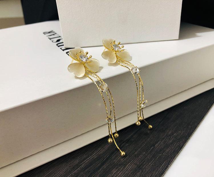 Bông Tai Tòn Teng Hoa Đào Tua Rua Đính Đá
