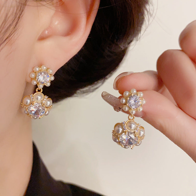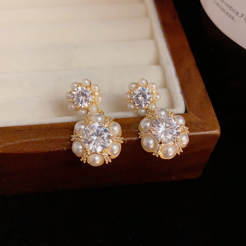 Bông Tai Tòn Teng Hoa Hạt Trai Nhuỵ Đá Đôi Nữ Tính