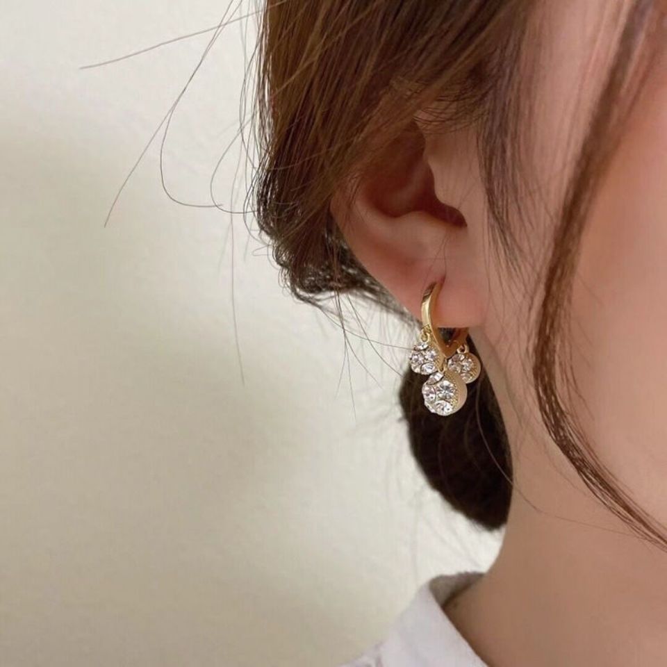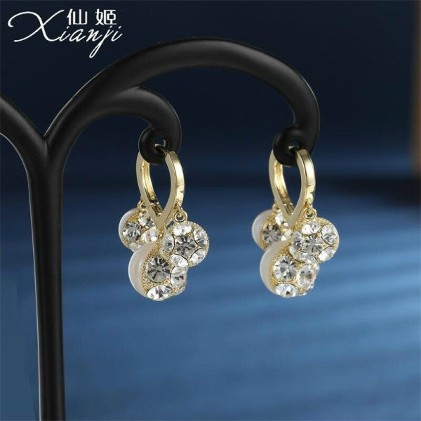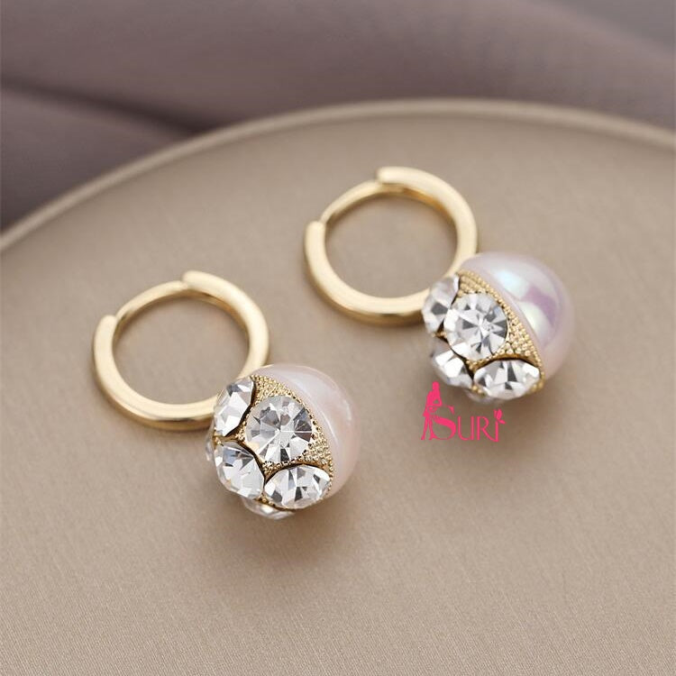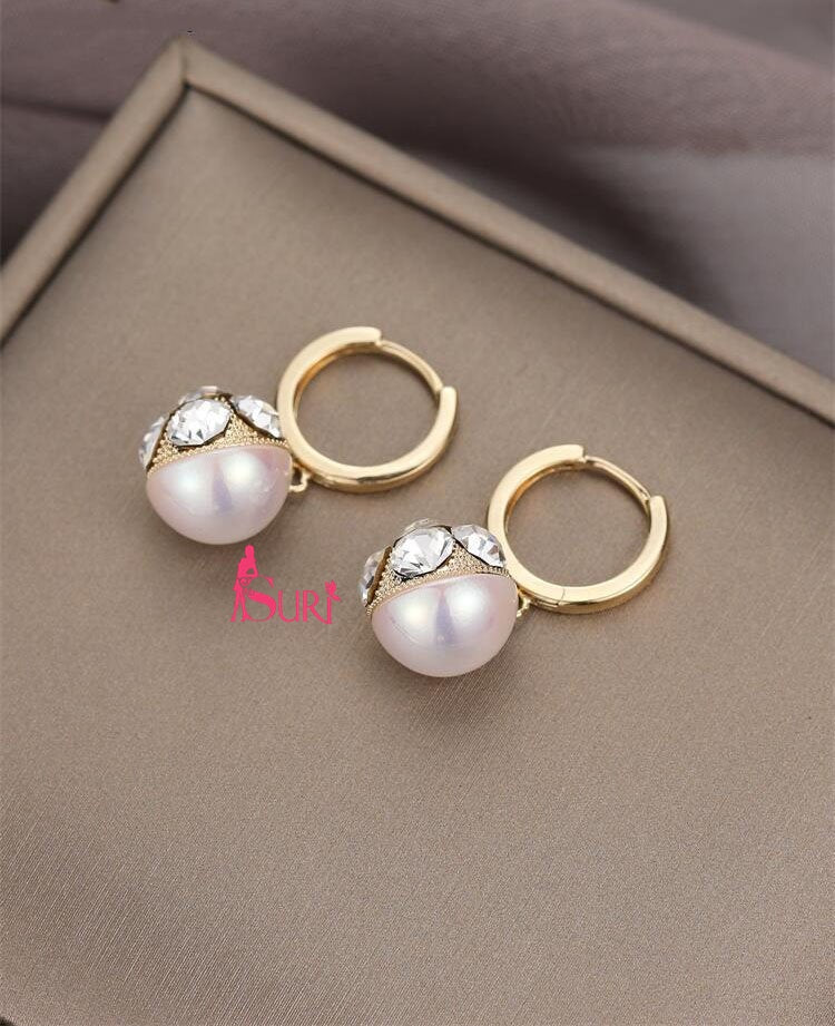 Bông Tai Tòn Teng Khoen 3 Hạt Trai Đính Đá Sáng 2 Mặt