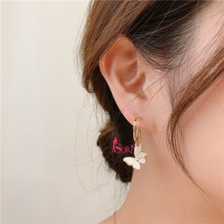Bông Tai Tòn Teng Khoen Bướm Đôi Đính Đá Phối Xà Cừ Trắng