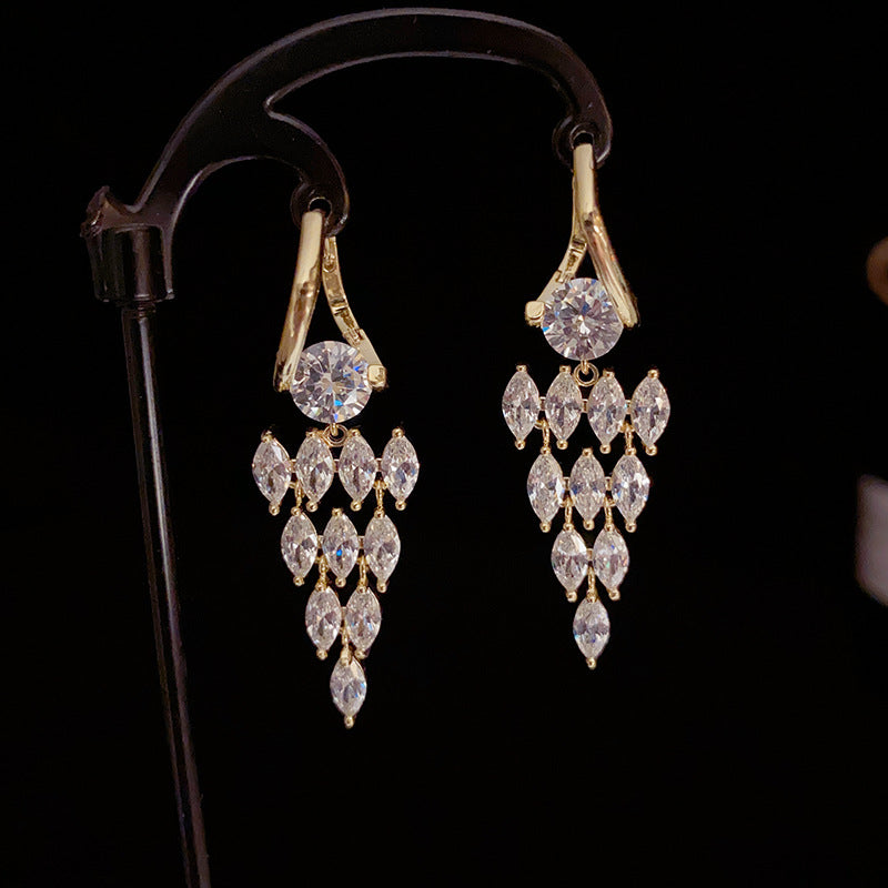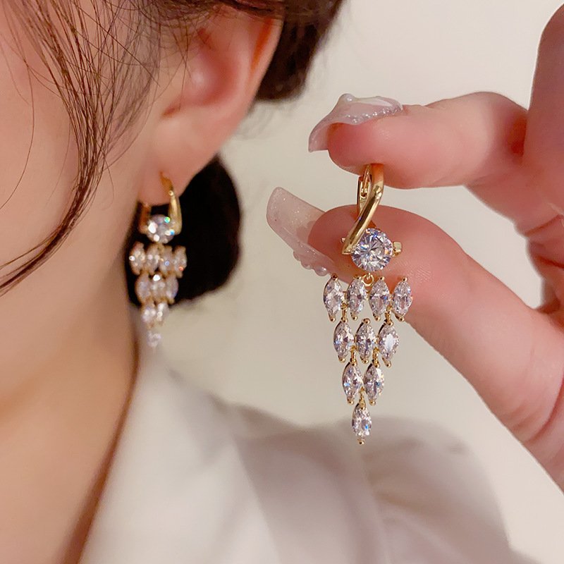 Bông Tai Tòn Teng Khoen Đính Đá Trắng Dáng Rơi