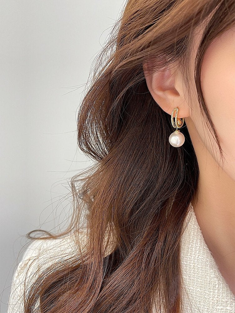 Bông Tai Tòn Teng Khoen Ngọc Trai Phối 3 Kiểu Đính Đá Trắng