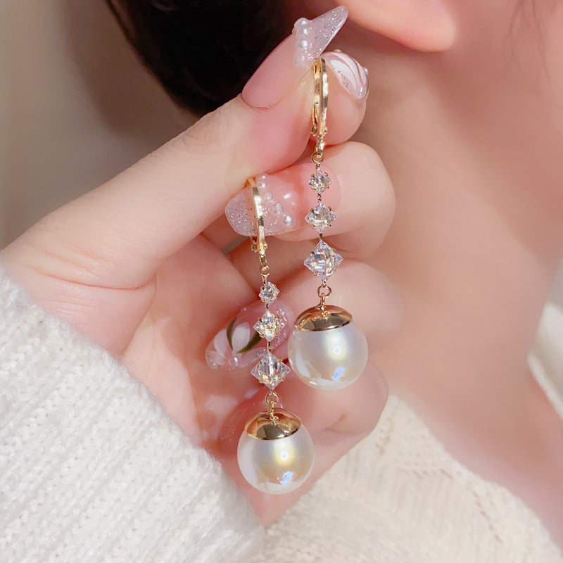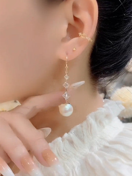 Bông Tai Tòn Teng Khoen Ngọc Trai Phối Thoi Đá Trắng 3 Hạt