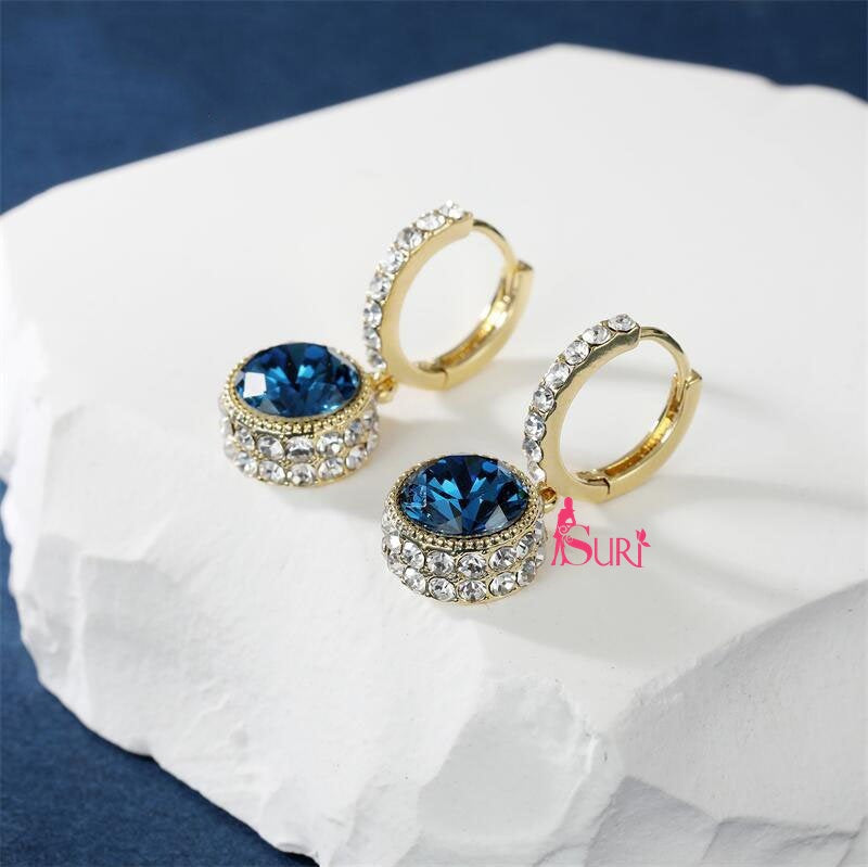 Bông Tai Tòn Teng Khoen Phối Đá Tròn Xanh Viền Đá Trắng Siêu Yêu