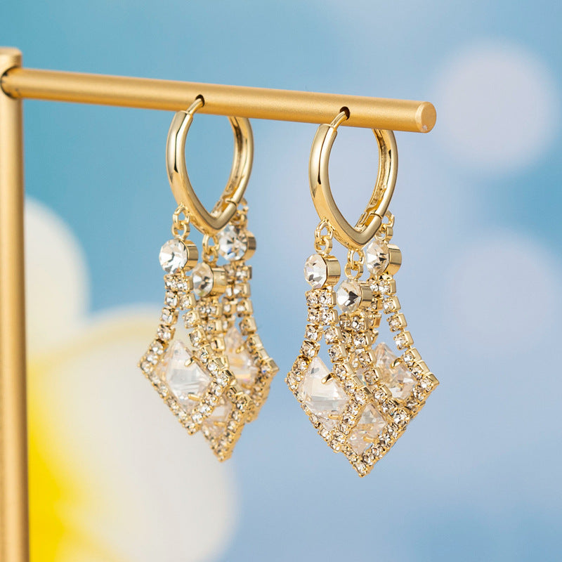 Bông Tai Tòn Teng Khoen Thoi Đá Tua Rua 3 Sợi