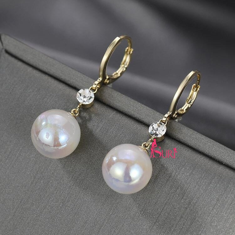 Bông Tai Tòn Teng Khoen Tròn 1 Hạt Trai Phối Đá Trắng Đơn Giản