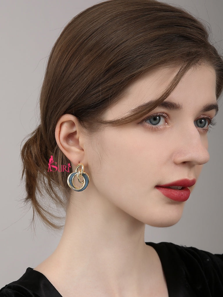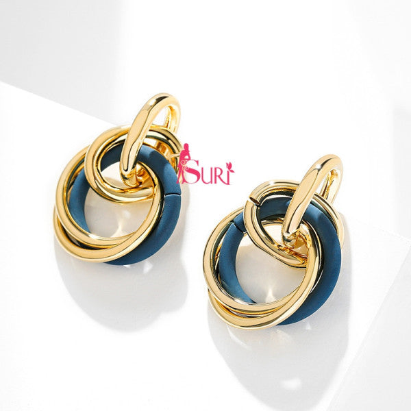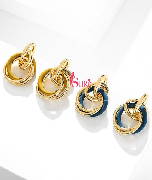 Bông Tai Tòn Teng Khoen Tròn Đôi Màu Sắc Cá Tính