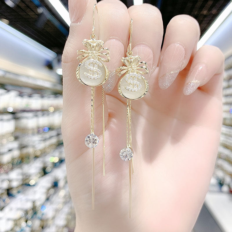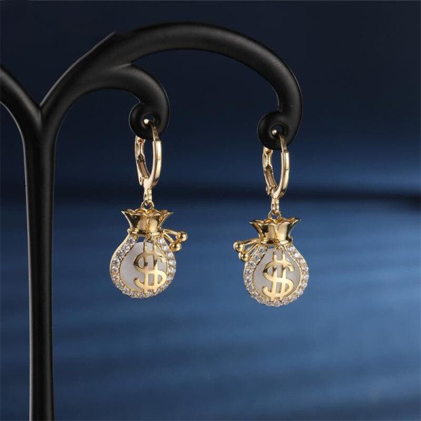 Bông Tai Tòn Teng Khoen Tròn Hình Dáng Túi Tiền May Mắn Siêu Yêu
