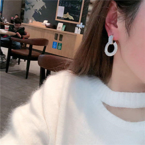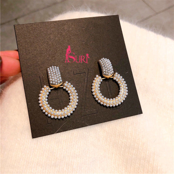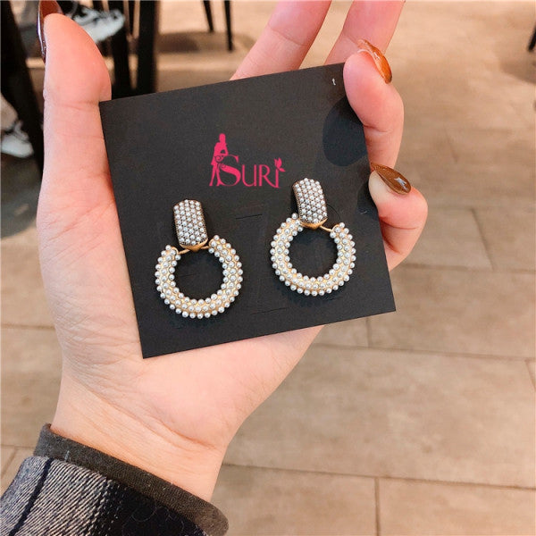 Bông Tai Tòn Teng Khoen Tròn Ngọc Trai Tấm 2 Màu Thời Trang