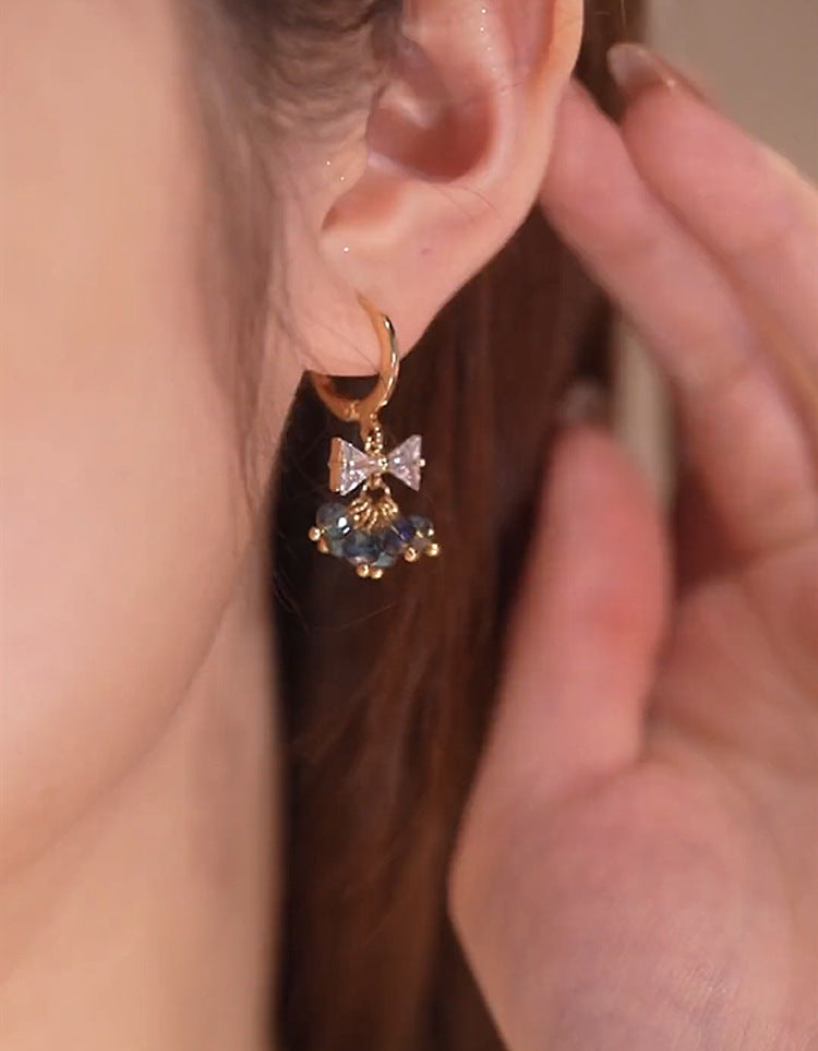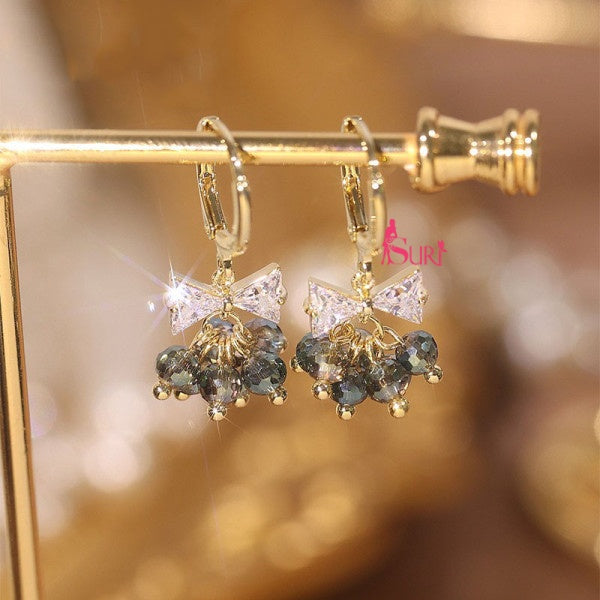 Bông Tai Tòn Teng Khoen Tròn Nơ Đá Trắng Phối Chùm Pha Lê Xinh Xắn