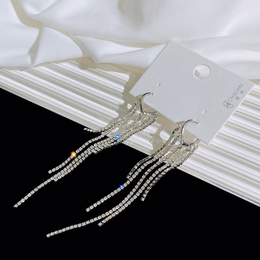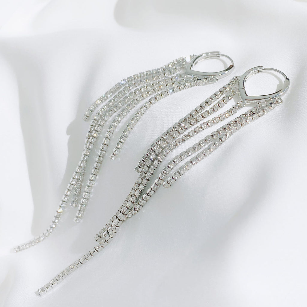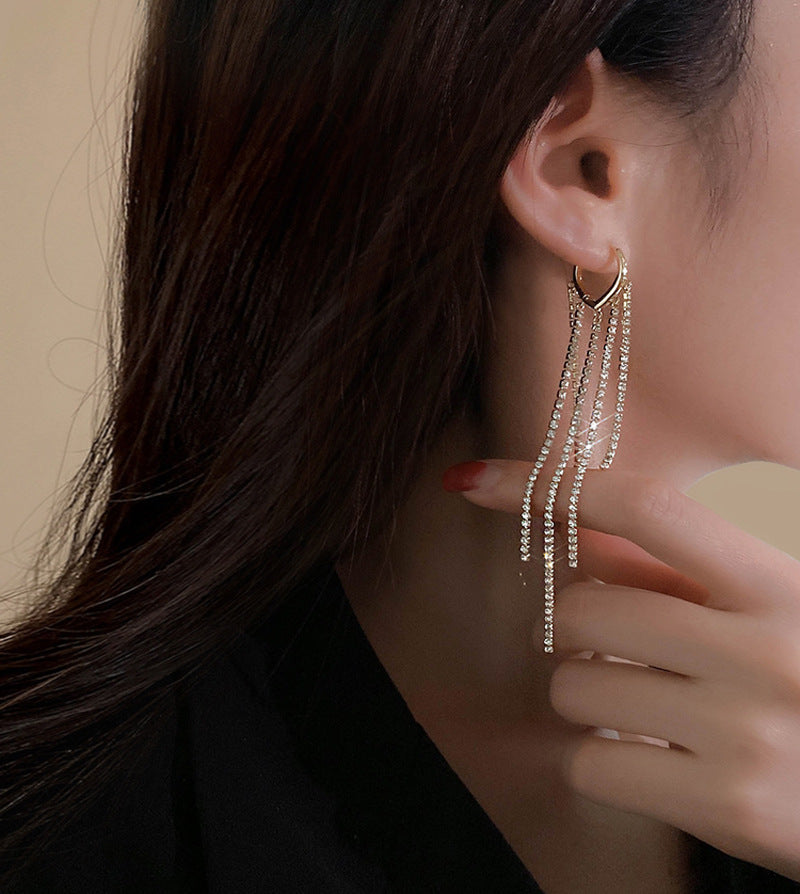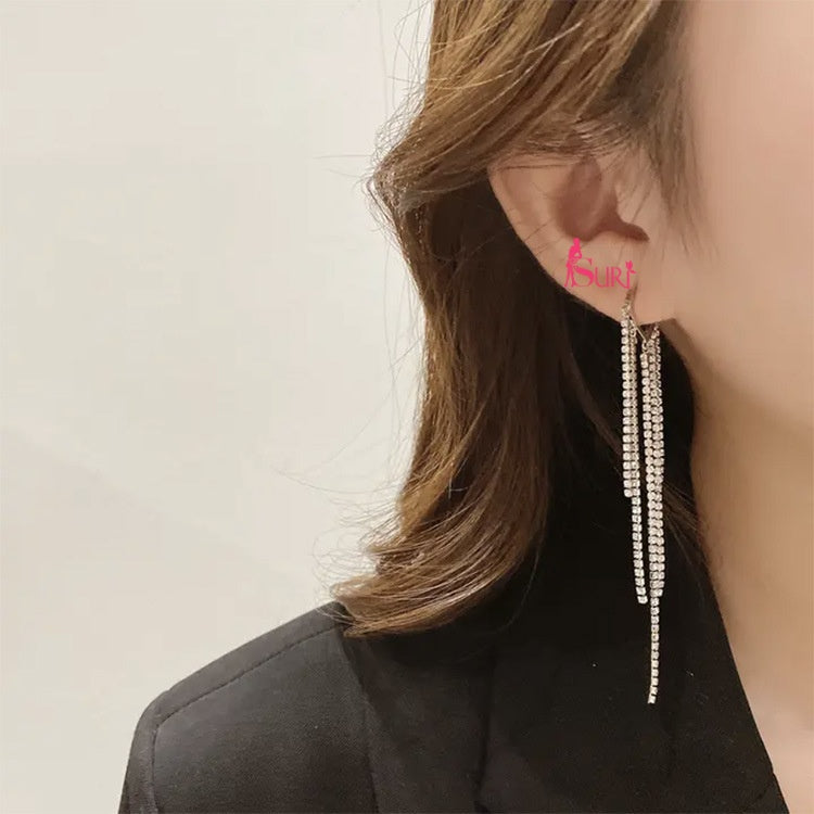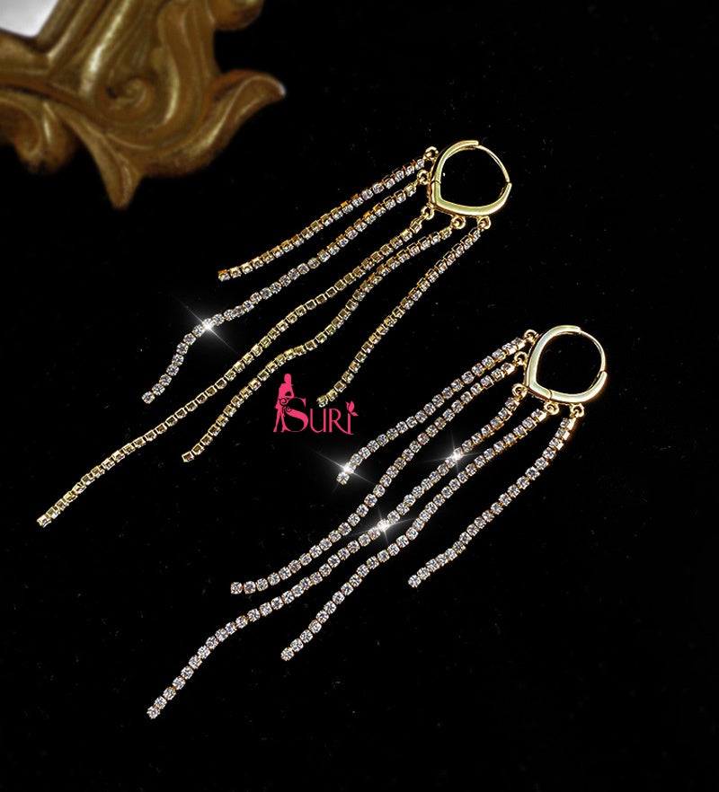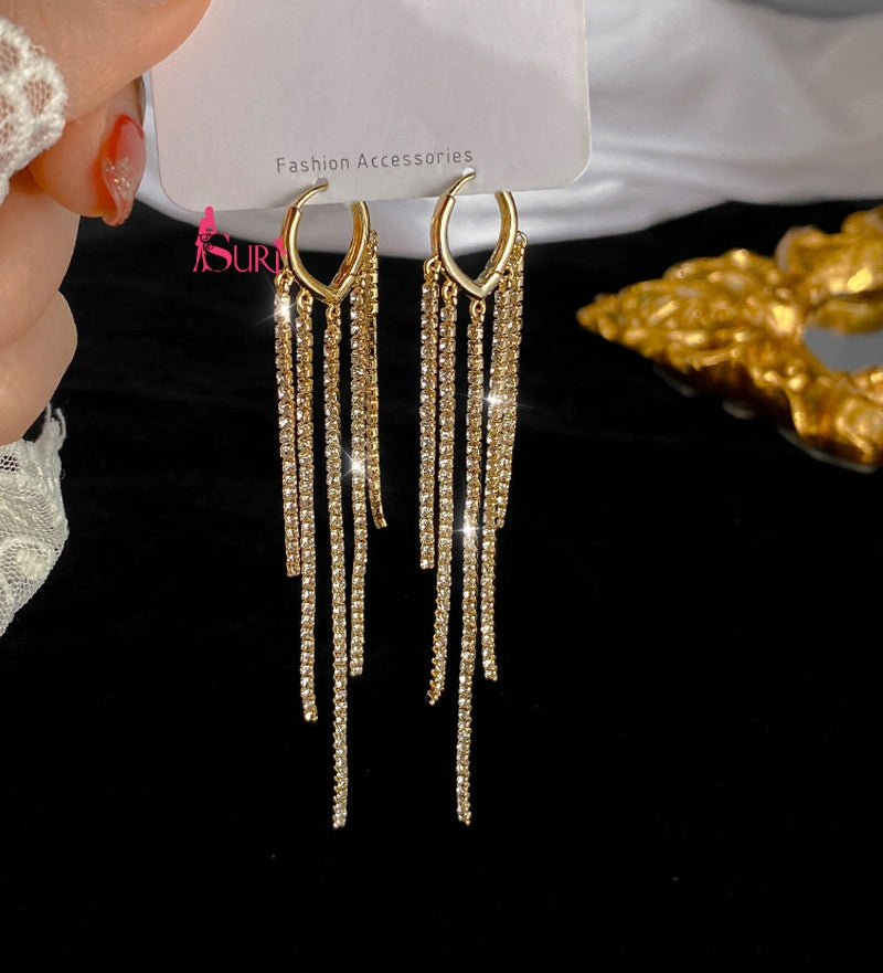 Bông Tai Tòn Teng Khoen Tua Rua Dáng Dài Đính Đá 5 Sợi