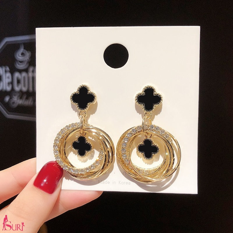 Bông Tai Tòn Teng Khoen Vàng 2 Hoa Đen 4 Cánh