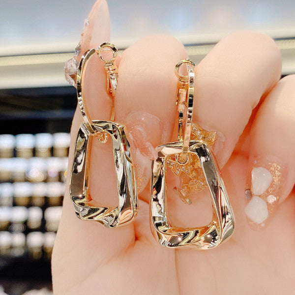 Bông Tai Tòn Teng Khoen Vàng Hình Học Chữ Nhật Hợp Kim Cá Tính