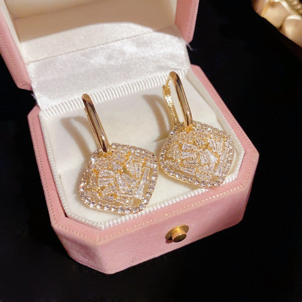 Bông Tai Tòn Teng Khoen Vuông Phối Thoi Nạm Đá Cá Tính
