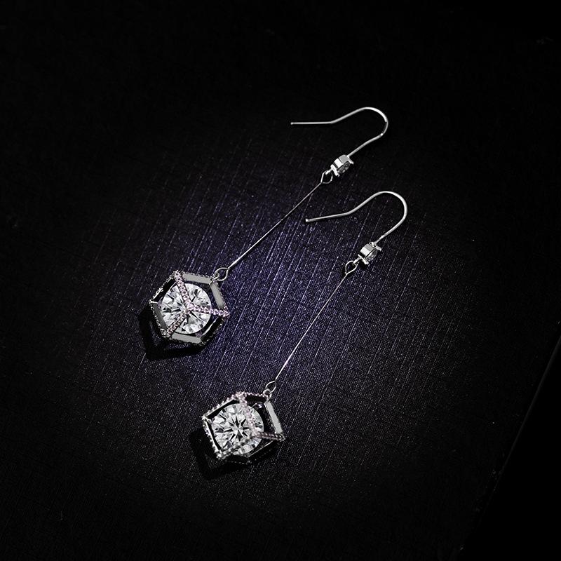 Bông Tai Tòn Teng Khối Lập Phương Đá Trắng Dạng Móc