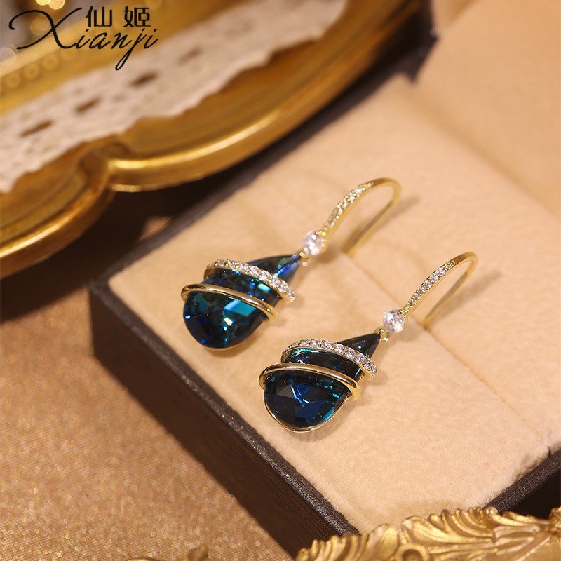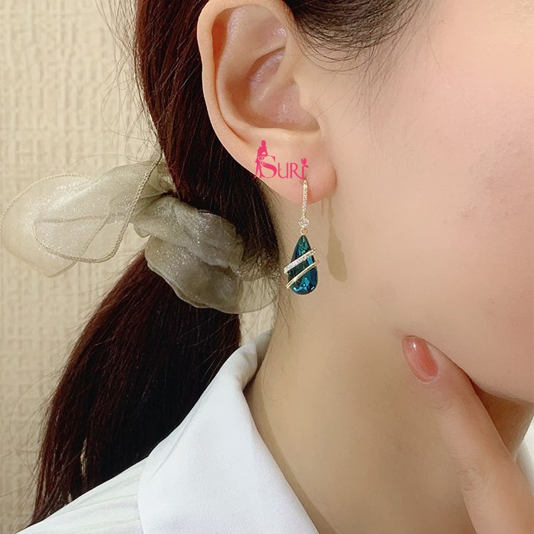 Bông Tai Tòn Teng Kiếu Dáng Đá Xanh Coban Hình Giọt Nước Phối Đá Trắng Dạng Móc