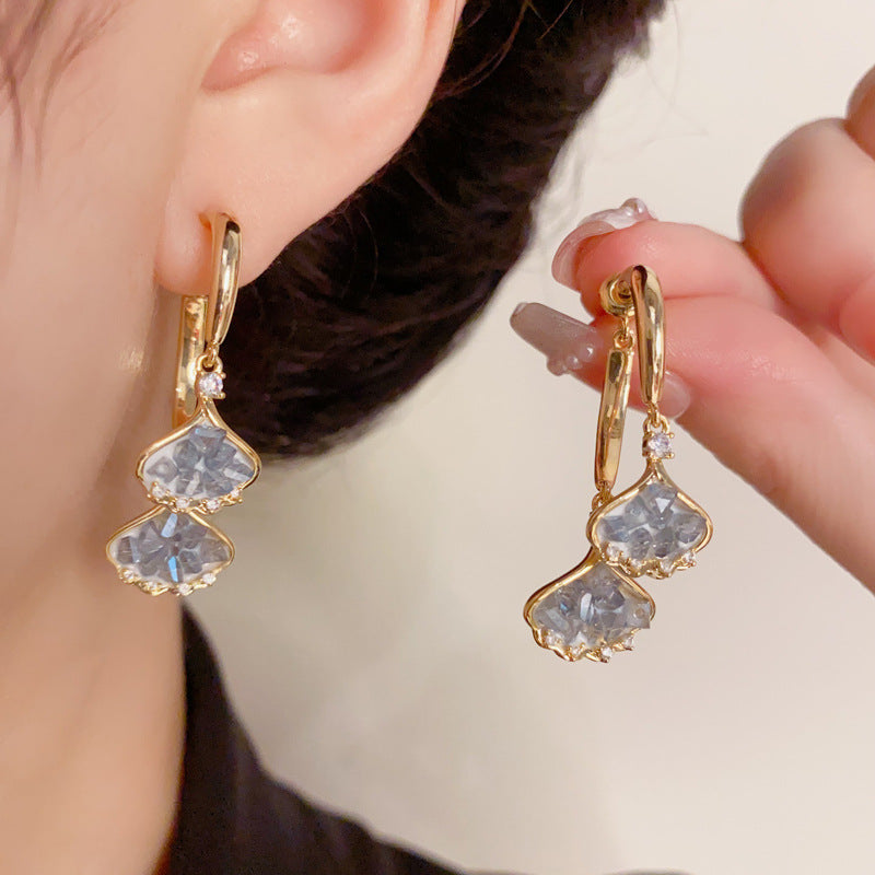 BÔNG TAI TÒN TENG KIỂU DÁNG LÁ BẠCH NGỌC ĐÁ XANH TRƯỚC SAU THỜI TRANG