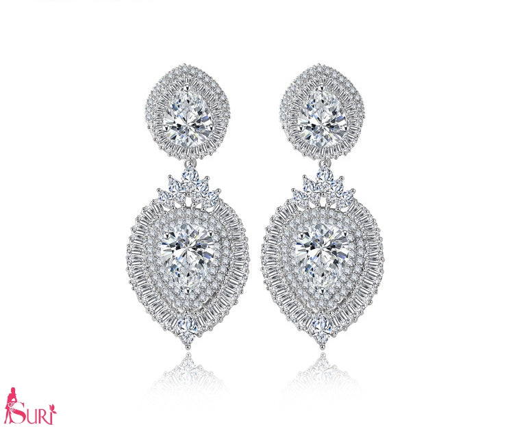 Bông Tai Tòn Teng Nạm Đá Trắng Cao Cấp