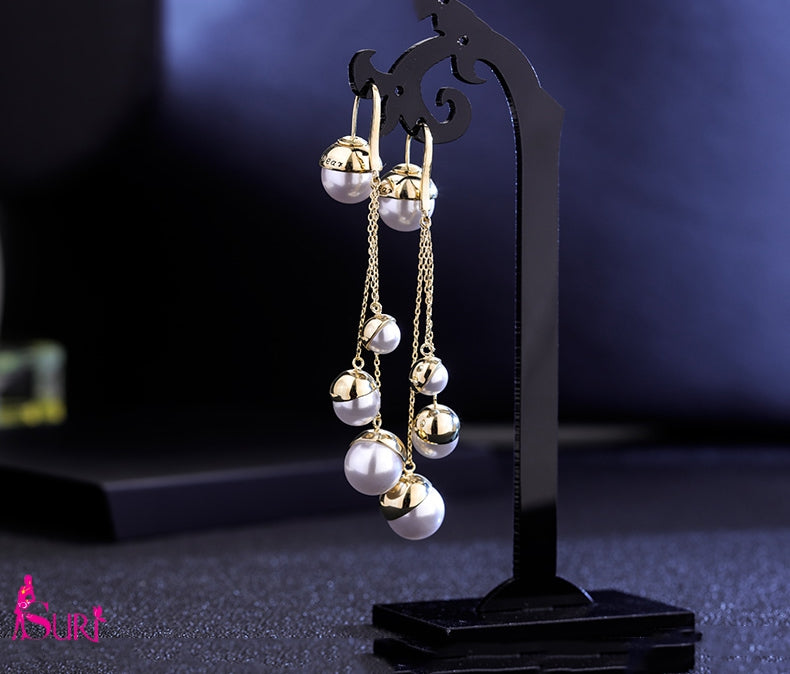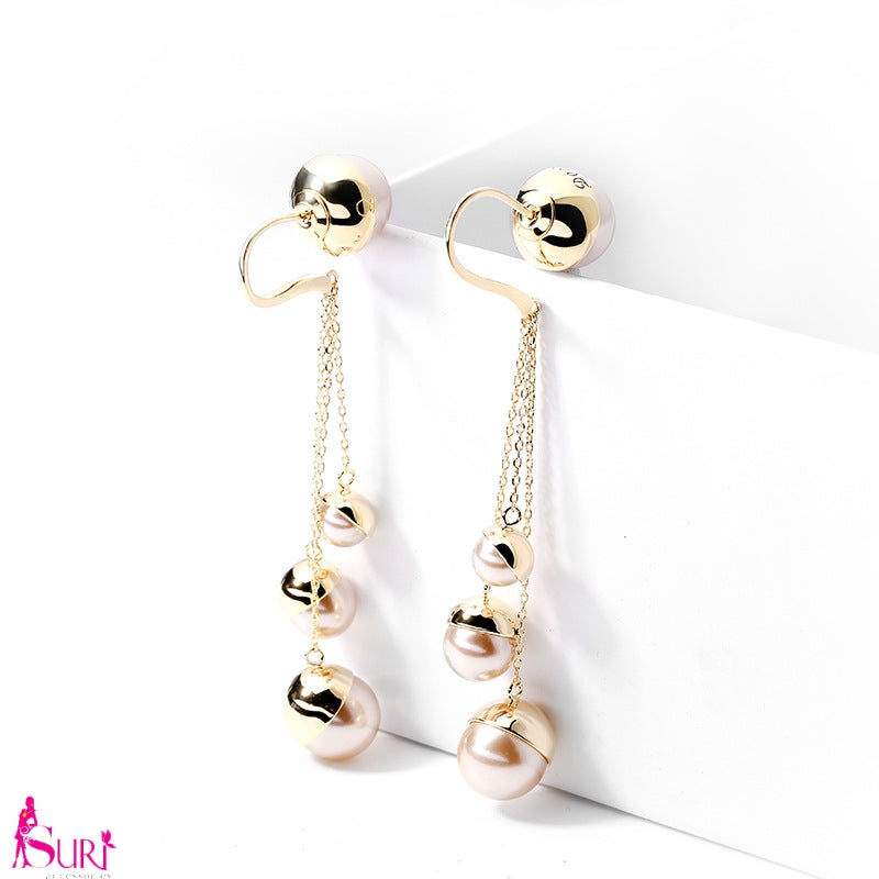 Bông tai tòn teng ngọc trai phong cách Hàn quốc