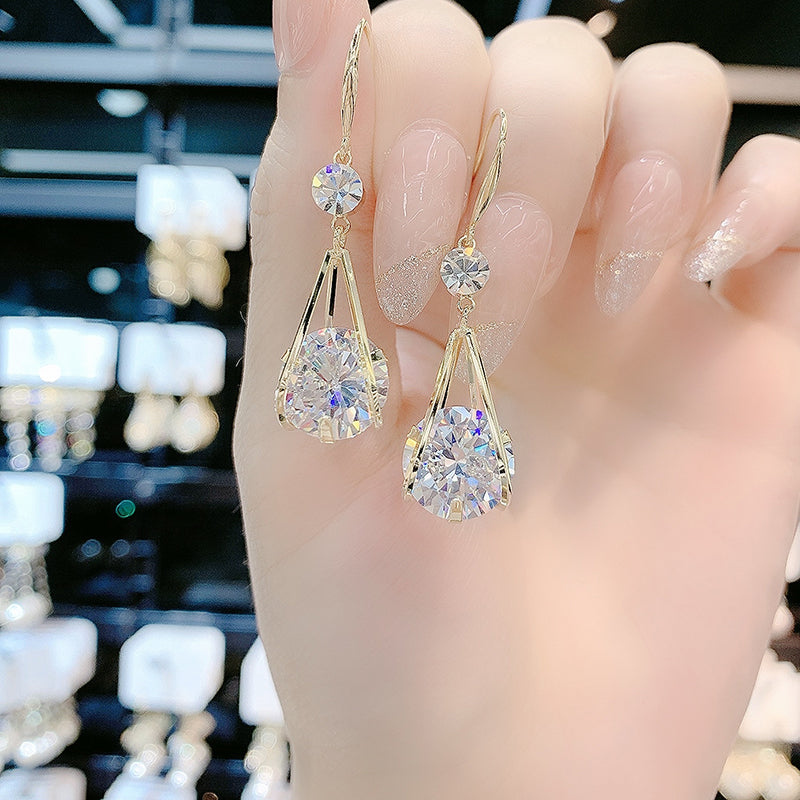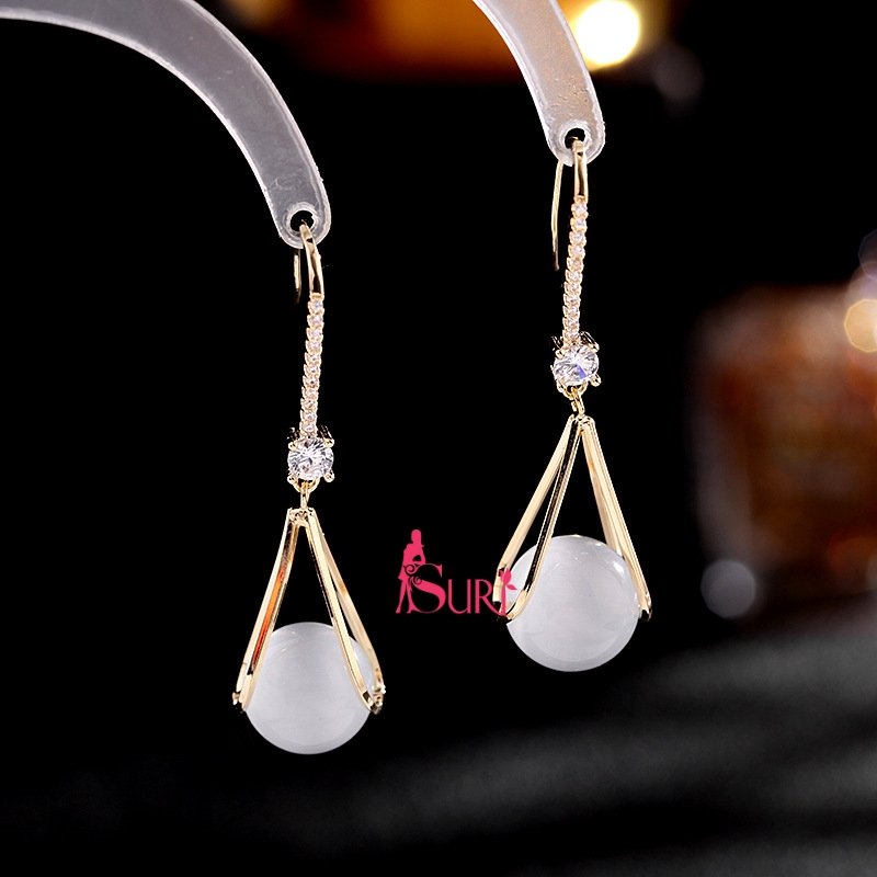 Bông Tai Tòn Teng Nụ Đá Mắt Mèo Dạng Móc Đính Đá