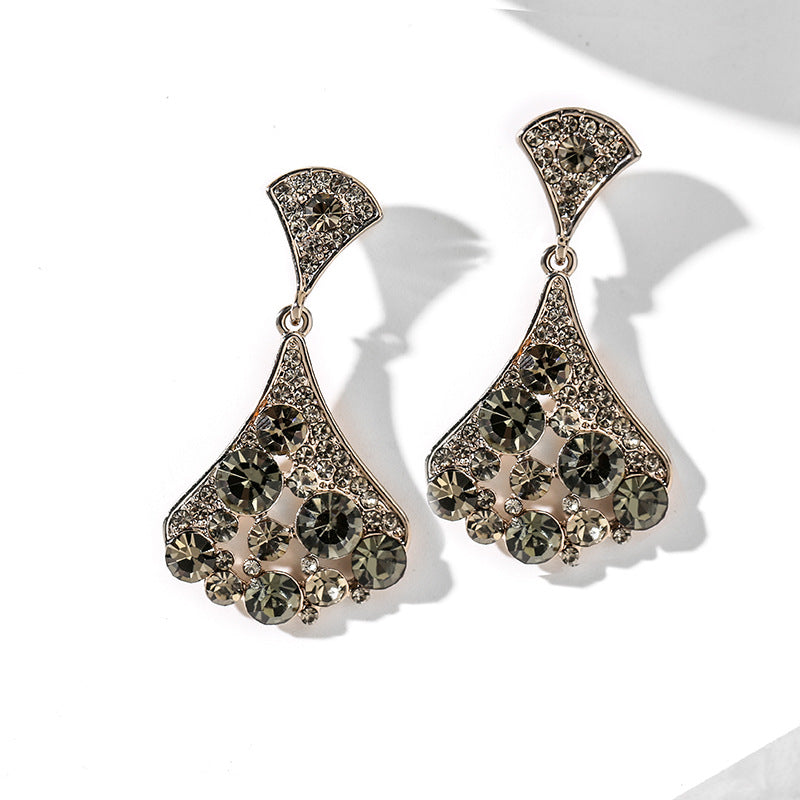 Bông Tai Tòn Teng Rẻ Quạt Đính Đá Đen