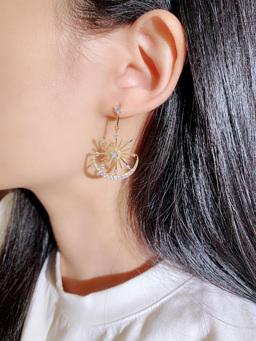 Bông Tai Tòn Teng Sao Băng Vàng Đính Đá