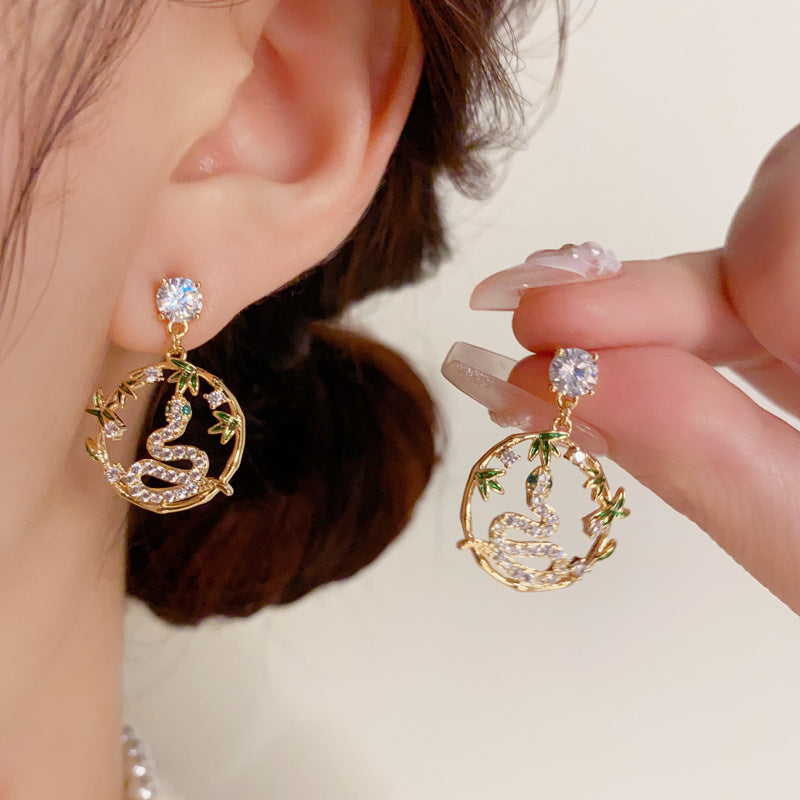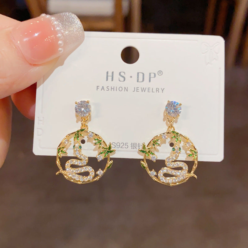 BÔNG TAI TÒN TENG SNAKE ĐÍNH ĐÁ TRẮNG PHỐI LÁ XANH ĐỘC LẠ