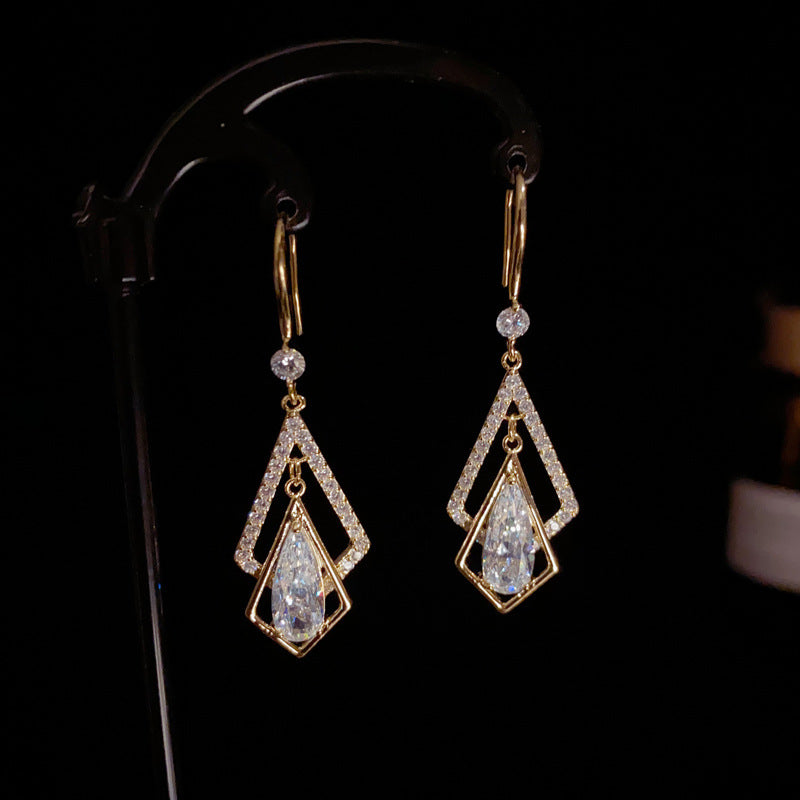 BÔNG TAI TÒN TENG THOI KÉP PHỐI ĐÁ TRẮNG GIỌT NƯỚC DẠNG MÓC