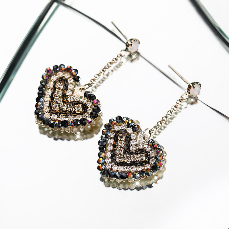 Bông Tai Tòn Teng Trái Tim Đính Đá 2 Mặt
