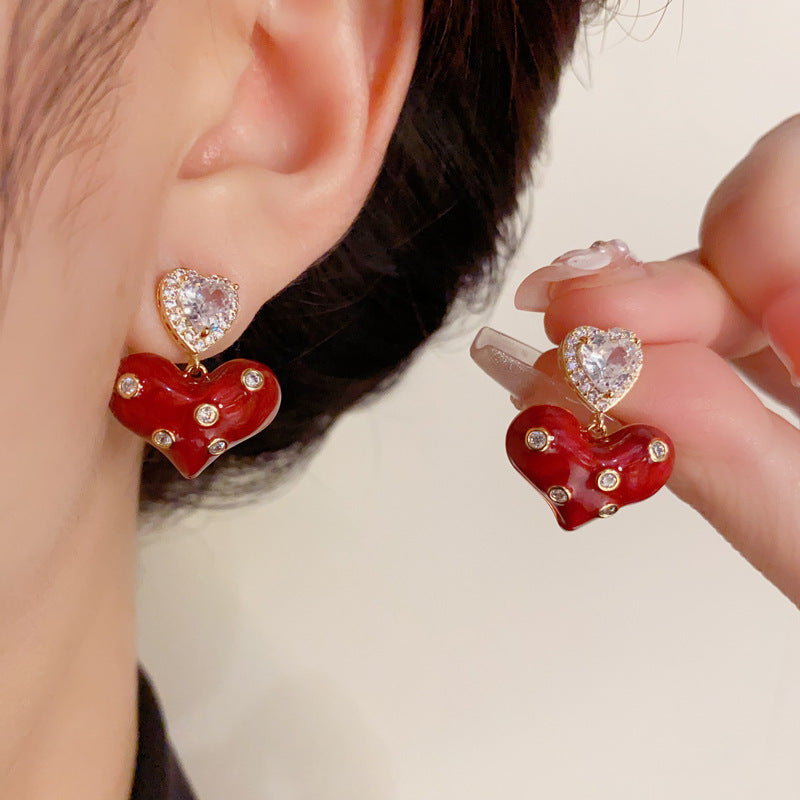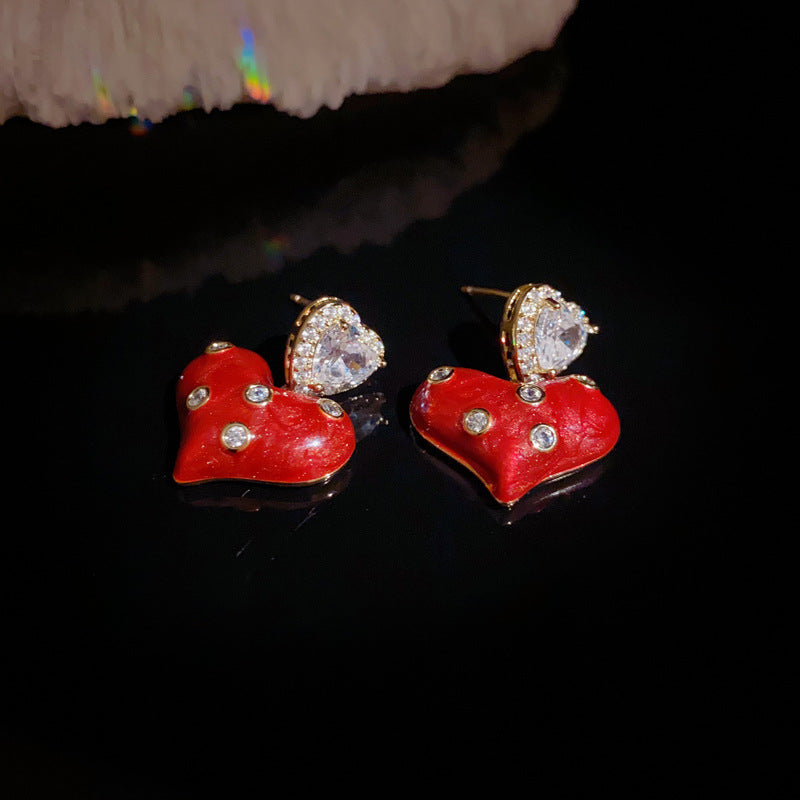 BÔNG TAI TÒN TENG TRÁI TIM ĐÍNH ĐÁ TRẮNG PHỐI TIM ĐỎ NỔI BẬT