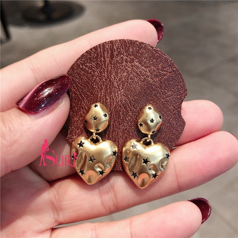 Bông Tai Tòn Teng Trái Tim Đồng Hình Ngôi Sao Đen