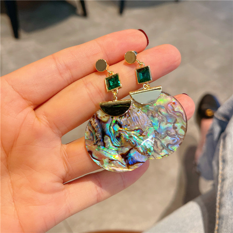 Bông Tai Tòn Teng Tròn Ánh Xà Cừ Xanh Đen Lạ Mắt