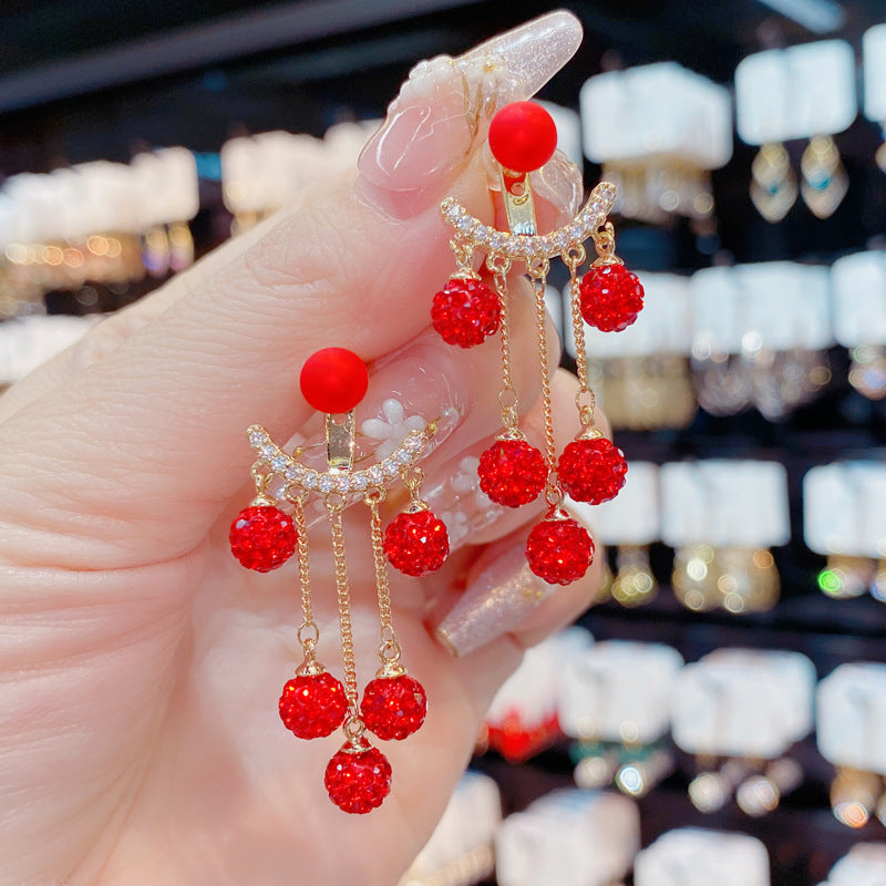 Bông Tai Tòn Teng Tua Rua Hạt Đỏ Vành Tai Dưới Nữ Tính