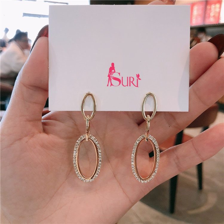 Bông Tai Tòn Teng Vàng Hình Elip Đính Đá Trắng