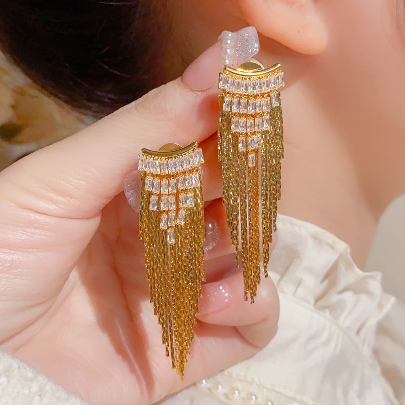 Bông Tai Tòn Teng Vành Tai Phối Tua Rua Vàng 2 Kiểu