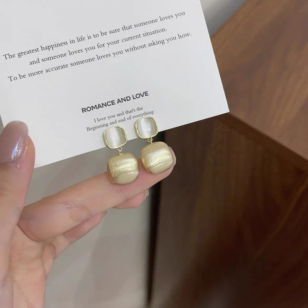 BÔNG TAI TÒN TENG VUÔNG ĐÔI ĐÁ MẮT MÈO PHỐI BẢN VÀNG ĐỘC ĐÁO