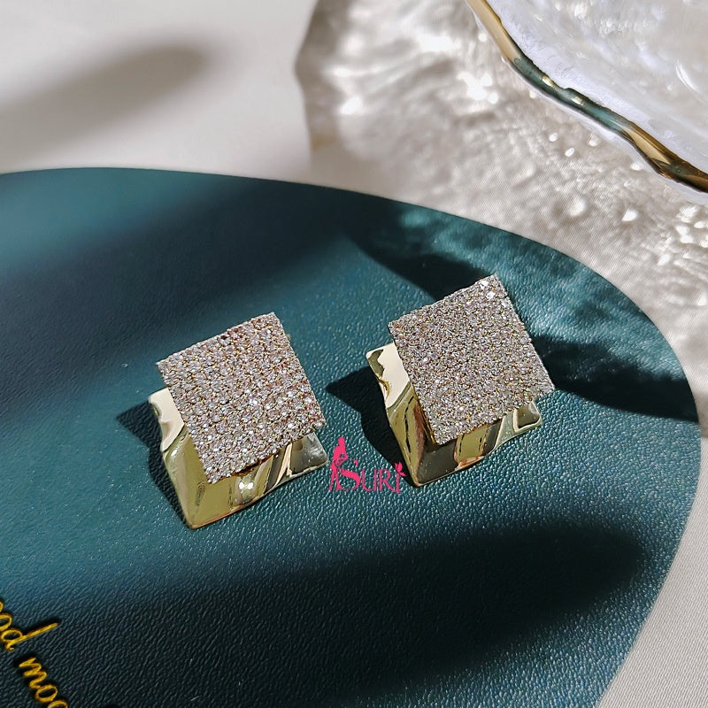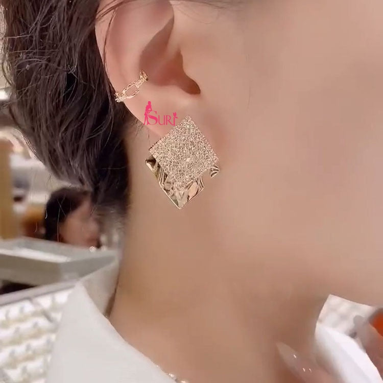 Bông Tai Hình Thoi Đôi Phối Đá Trắng Cá Tính